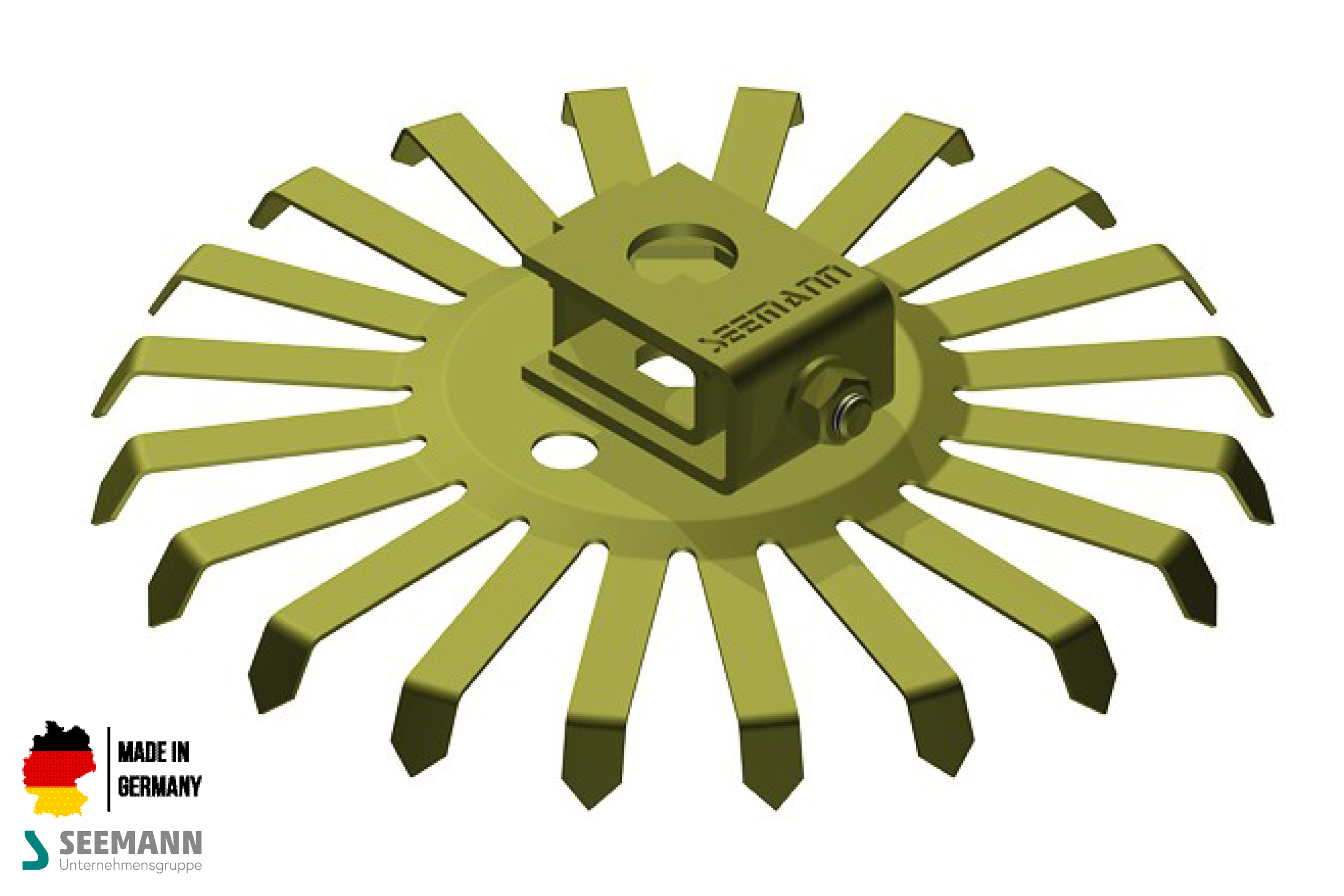 Titan-Stanzteller mit 20 Kontakten inklusive verschweißtem Flansch zur Befestigung. Der Teller ist geeignet für Eloxal- und Elektropolierverfahren.